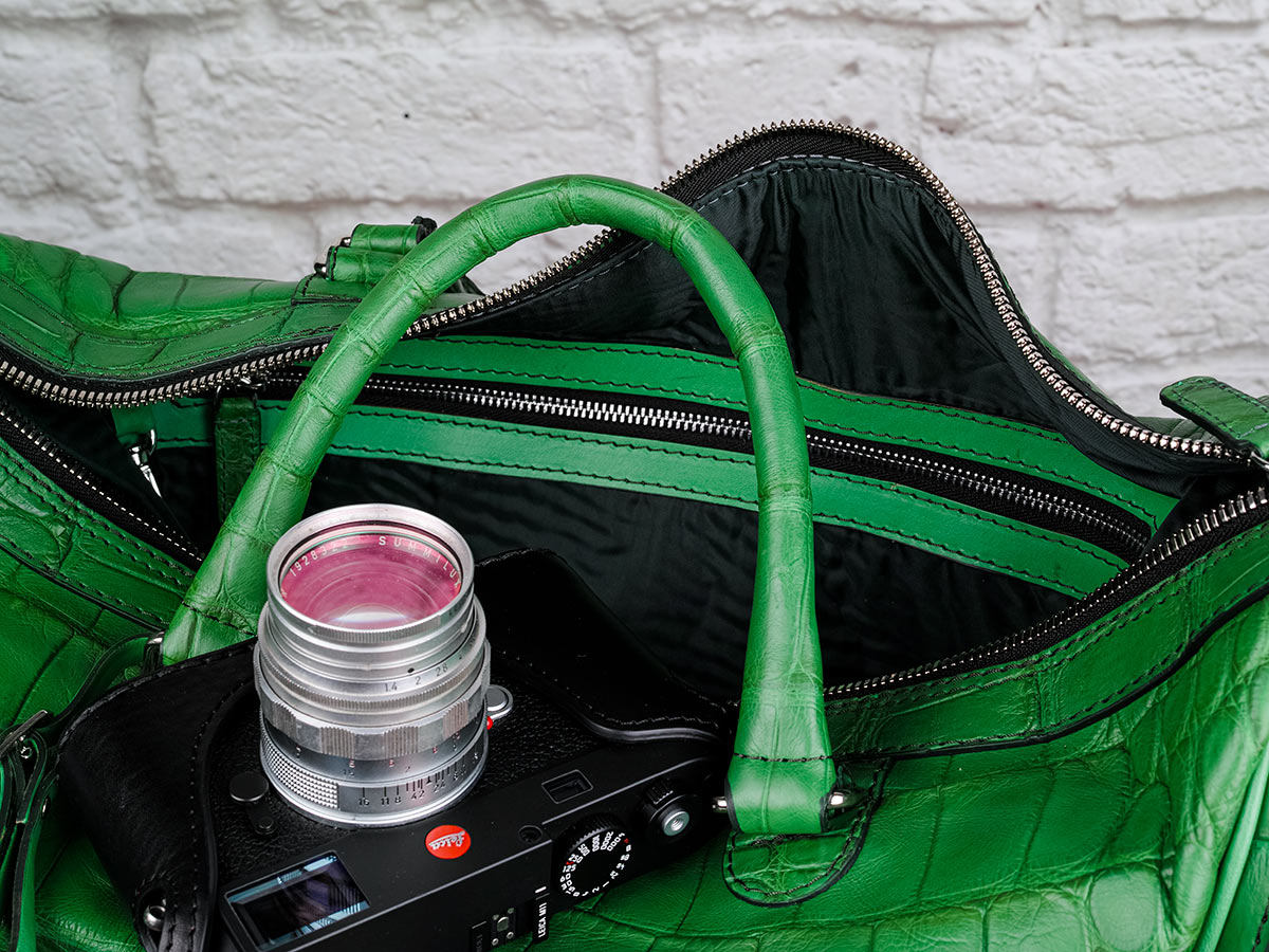 Made of top quality leather and compact in dimensions, it has a double use: a traditional weekender bag and a travel bag for Leica shooters with a photographic insert (large enough to keep more cameras and lenses)that make the bag an occasional camera bag.