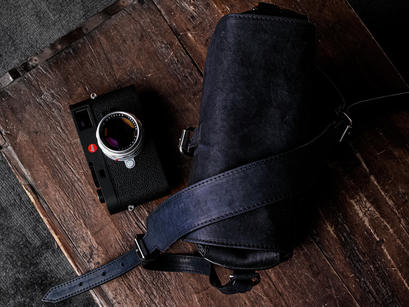 The Leather Secret: the double-tanning and reversed-part usage on the Night Blue Stealth appeals to the tactile nature of photographers who care about the "patina" their gear develops over time, That aged goatskin is a brilliant choice for this specific photographer. In the world of high-end photography, there is a deep appreciation for gear that looks like it has a "history," even on day one.